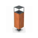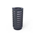 Estructura en chapa de acero carbono, chapa galvanizada y tubo redondo de Ø200x3mm decapado, con tratamiento primario a base de zinc C5 y acabado lacado a RAL gris forja, a una temperatura de 230°C.