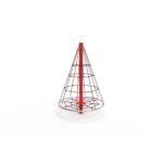 Descripción: Pirámide de cuerdas C2,5m, compuesto por 1 tubo de Ø114.3mm en acero galvanizado y lacado a RAL gris forja 600. Red roja para trepar en forma de pirámide, fabricada en cuerda reforzada de acero revestido por fibras de polipropileno de Ø16mm.