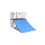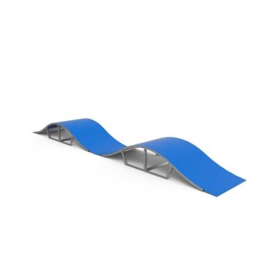 Descripción: Compuesto por una estructura con patas de tubo cuadrado 40x40mm de acero de carbono decapado y chapa de acero galvanizada. Superficie deslizante en chapa de acero de carbono decapado, con tratamiento primario a base de zinc C5 y acabado lacado a RAL 5010 Azul Genciana, a una temperatura de 230°.