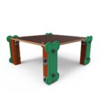 Equipamiento BragURBAN, BALANCÍN CANINO (HIC – 0.98m). Compuesto por una estructura horizontal en poste de madera 90x90mm color cerezo, con sistema oscilante de acero galvanizado