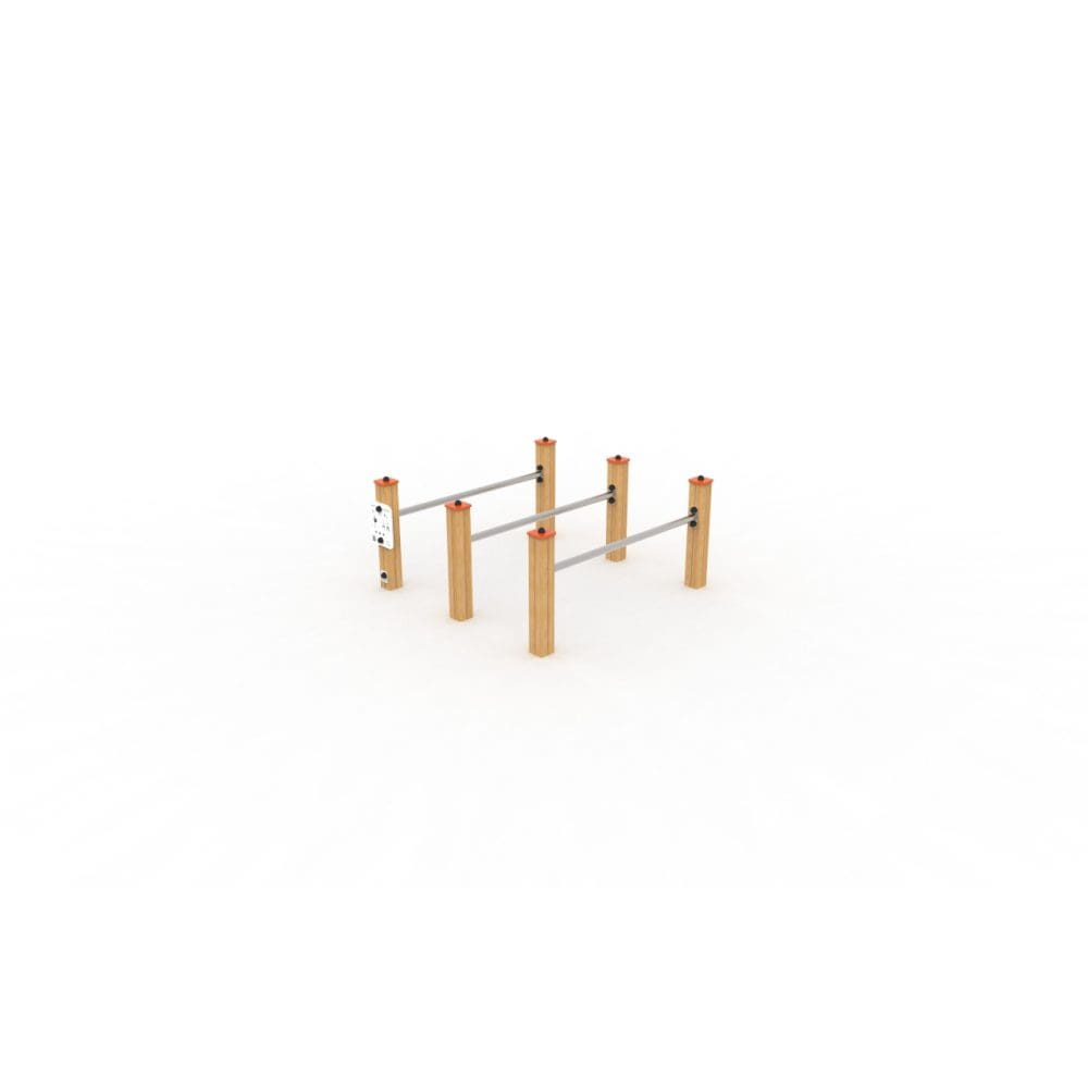 Descripción: Equipo compuesto por 6 postes en metal 90x90mm en acero galvanizado e tubos en acero inoxidable 304. Placas informativas en HPL grabadas con láser.