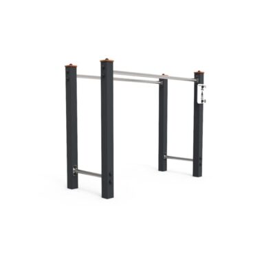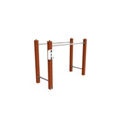 Descripción: Equipamiento para fortalecimiento muscular. Compuesto por poste metálico de 90x90mm con tratamiento primario a base de zinc C5 y acabado lacado a RAL gris forja