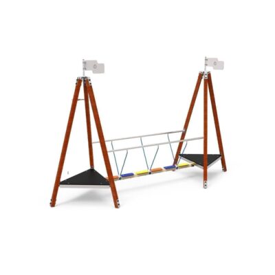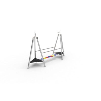 1 Puente en HDPE fabricado con cuerdas reforzadas de acero revestido por fibras de polipropileno de Ø16mm y pasamanos en tubo de Ø50mm en acero inox