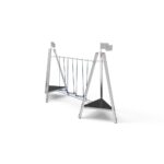 – 1 Puente Hilo (Hic – 0.58m) compuesto por 2 pasamanos en tubo Ø50mm de acero inox y una cuerda de paso reforzada en acero revestido por fibras de polipropileno Ø16mm, con cuerdas equilibrio de manos.
