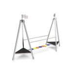 – 1 Puente de Salto en HDPE fabricado con cuerdas reforzadas de acero revestido por fibras de polipropileno de Ø16mm y pasamanos en tubo de Ø50mm en acero Inox