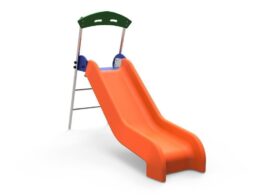 Descripción: tobogán (AQL – 1,00m) compuesto por escalera de 4 peldaños en contrachapado marino antideslizante de color marrón, con laterales en HDPE, tubos de refuerzo laterales y barandillas en acero inoxidable 304.