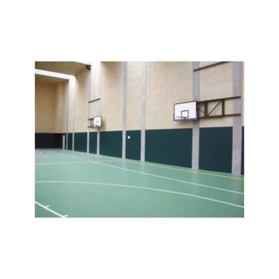 Juego de canastas de baloncesto plegables lateralmente a la pared del pabellón o instalación deportiva.