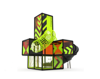 2 Estructuras tridimensionales para escalar fabricadas en cuerdas reforzadas de acero revestido por fibras de nylon de Ø16mm.