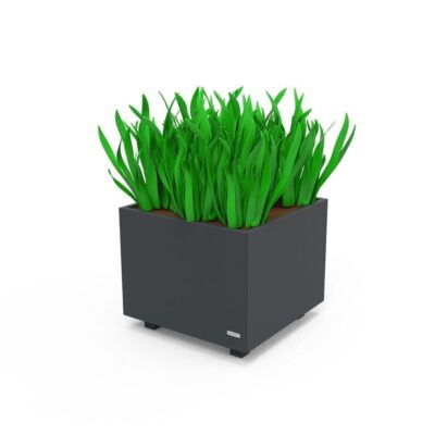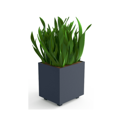 Estructura compuesta por chapa de 3mm de espesor en acero carbono decapado con tratamiento primario a base de zinc C5 y acabado lacado a RAL gris forja 600 deep blue, a una temperatura de 230°C.
