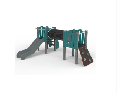 1 Tobogán rotomoldeado “Eco” (HIC – 1.00m) en HDPE 100% reciclado, con panel de protección en HDPE reciclado;