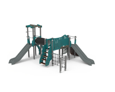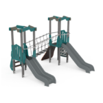 2 Toboganes rotomoldeados “Ecol” (HIC – 1,30m) en HDPE 100% reciclado, con panel de protección en HDPE reciclado;