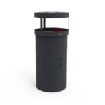 Estructura en acero laminado en caliente y galvanizado que garantiza una perfecta resistencia a la corrosión. Acabado con pintura electroestática poliéster a 220 ° en color gris forja con micropartículas metálicas.