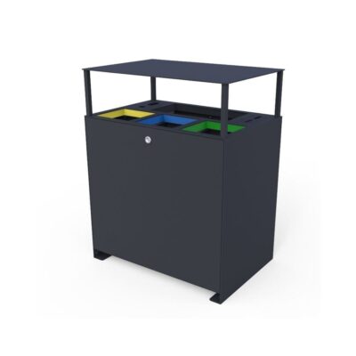 Cubeta extraíble en chapa electrocincada de 46L (orgánico), dos cubetas extraíbles en chapa electrocincada de 12L (pilas/cenicero) y tres cubetas extraíbles en chapa electrocincada de 23L (Papel, plástico y vidrio),Cenicero y depósito para pilas.