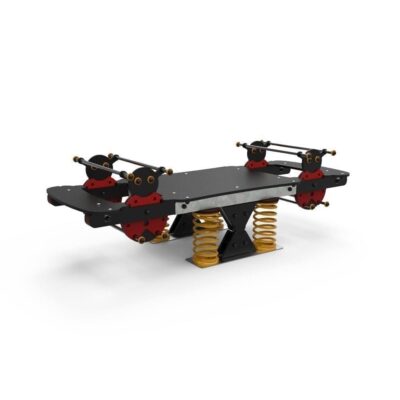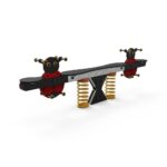 Descripción: Balancín Mariquitas 8 plazas (HIC – 0.85m). Compuesto por una estructura horizontal de aluminio de color natural, con sistema oscilante de acero galvanizado, 4 muelles de color amarillo con refuerzo y 4 paneles en forma de Mariquita en HDPE con 8 apoyos en tubo de acero inox (para manos y pies) en cada lado.