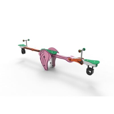 Descripción: Balancín Flamenco (HIC – 0.60m). Compuesto por estructura horizontal en aluminio de 90x90mm, con sistema oscilante de acero galvanizado revestido por 3 paneles