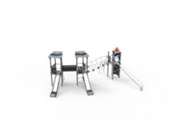 – 1 travesía aérea recta (ACL – 2,10m) con siete arcos para soporte de manos en tubo Ø40mm y Ø50mm en acero inoxidable