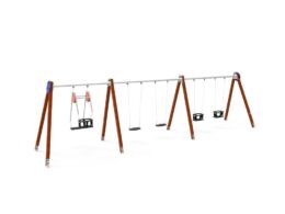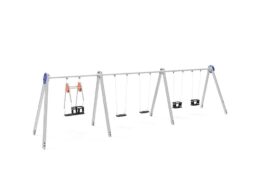 Descripción: Columpio LAGARTO (ACL – 1.40m) compuesto por postes metálicos de 90x90mm galvanizados, paneles decorativos en HDPE y 1 asiento Oruga.