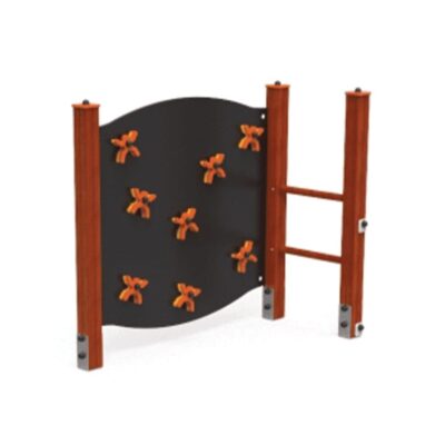 -1 Panel de Escalada de doble cara (HIC – 1.30m) en contrachapado marino, antideslizante marrón con paso circular y compuesto por 16 piedras de escalda Dummy en HDPE