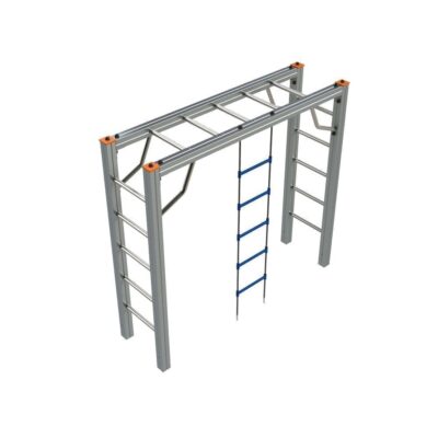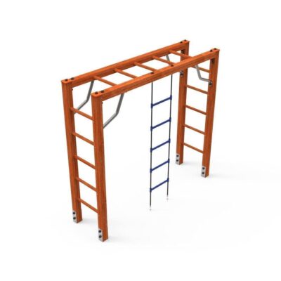Descripción: Equipamiento de escalada compuesto por 2 escaleras verticales y 1 escalera horizontal con postes y travesaños de madera y 1 escalera de cuerda.