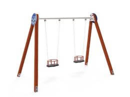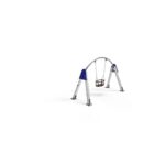Descripción: Columpio Psyche 1 (HIC – 1m). Compuesto por 2 postes Inclinados de acero Inox Ø114 y 1 asiento bebé de goma termoplástica y cadenas galvanizadas de Ø5mm.
