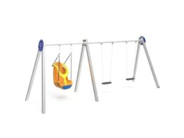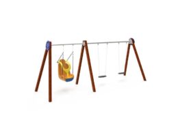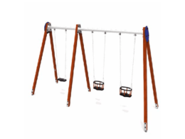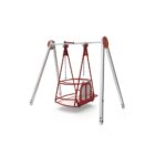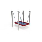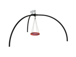 Descripción: EColumpio Applefly (ACL – 1.40m) compuesto por un pórtico simple, 1 barra horizontal Ø80mm de acero galvanizado, sistema de rotación de acero inoxidable con cojinetes, 4 postes de aluminio 90x90mm, 2 paneles decorativos en bragpo y 1 asiento colectivo tipo nido (Ø1,20m) con sistema de seguridad y cadenas galvanizadas. Herrajes de acero inoxidable A2. Fijación al suelo tipo X (atornillado) o tipo Y (hormigonado)