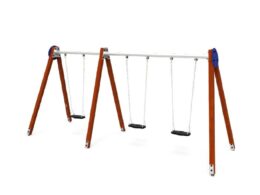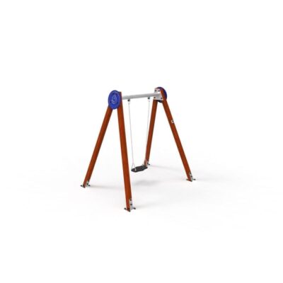 Descripción: Columpio Spalgis 2 (AQL – 1.25m) compuesto por pórtico simple, 1 poste horizontal Ø80mm en acero galvanizado, sistema de rotación en acero inoxidable con cuatro rodamientos, 4 postes en aluminio 90x90mm , 1 asiento plano enassentos planos en caucho termoplástico con com cadenas galvanizadas Ø5mm.