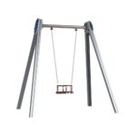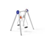 Descripción: Columpio Spalgis 2 (AQL – 1.25m) compuesto por pórtico simple, 1 poste horizontal Ø80mm en acero galvanizado, sistema de rotación en acero inoxidable con cuatro rodamientos, 4 postes en aluminio 90x90mm , 1 asiento plano enassentos planos en caucho termoplástico con com cadenas galvanizadas Ø5mm.
