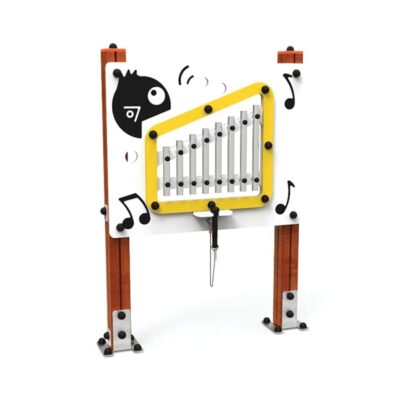 Descripción: Juego lúdico accesible a niños con movilidad reducida, compuesto por 2 postes de aluminio de 90x90mm, panel del juego en HDPE.