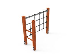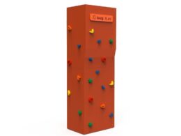 Descripción: Escalada CUB 1 (ACL – 2.07m), compuesta por 6 paneles cuadrados y 8 triangulares de escalada, ambos en HDPE naranja con piedras de escalada en poliamida. Uniones de