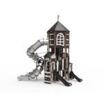 -1 Torre “LABERINTO OCTOGONAL” (HIC – 1,30m), con tejado en HDPE y postes metálicos de 90x90mm galvanizados; plataformas con estructura galvanizada revestida en HDPE negro.
