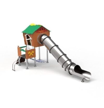 – 1 Tobogán Tubular (HIC -1,80m) en chapa calandrada de acero Inox, con protecciones en HDPE.