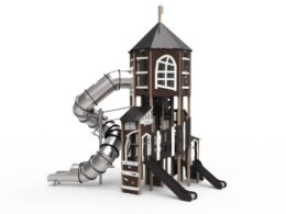 – 1 Torre Flor con tejado a dos aguas en HDPE (HIC – 1.80m), postes de aluminio de 90x90mm y plataforma con estructura galvanizada revestida en HDPE negro