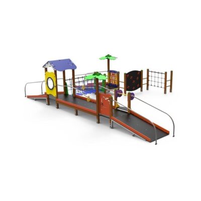 – 2 Paneles lúdicos en HDPE (1 Juego Tres en Raya compuesto por 9 piezas cuadradas rotativas (X&O) y 1 Juego del Laberinto);
