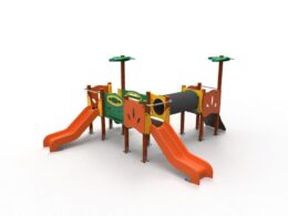 – 2 Torres Simples sin tejado con palmera en HDPE (HIC – 0.42m) con postes de aluminio 90x90mm color natural y plataformas con estructura galvanizada revestida en HDPE negro.