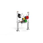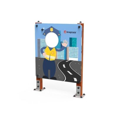 Descripción: Juego Lúdico accesible a niños con movilidad reducida, compuesto por 2 postes en aluminio, panel decorativo y lúdico en HDPE.