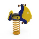 Descripción: Muelle Flecha (ACL – 0.54m), compuesto por estructura central en tubo rectangular de 120x60mm, metálico, galvanizado y lacado. 1 asiento en HDPE, 4 apoyos para manos y pies en tubo Ø25mm en acero inoxidable y 1 muelle en espiral de 20x180x400mm color amarillo.