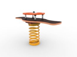 Descripción: Muelle Equilibrio (HIC – 0.60m). Compuesto por 7 paneles redondos en HDPE incorporados al suelo por 7 muelles, 6 paneles redondos en HDPE con señales decorativas