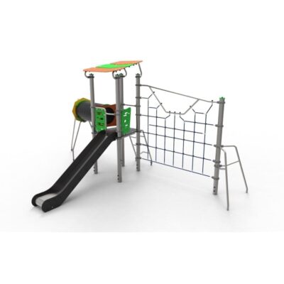 – 1 Red de Escalada Solar vertical (HIC – 2,65m) en tejido de cuerda reforzada en acero revestido por fibras de polipropileno de Ø 16mm y pasamanos de ø40mm en acero inox;