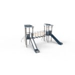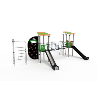 – 2 toboganes de acero inoxidable (ACL – 1,30 m) en superficie corrediza de acero inoxidable con paneles laterales de protección y decorativos en HDPE