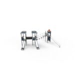 – 1 Puente Minero suspendido (HIC – 1,30m) compuesto por peldaños en HDPE, fabricado con cuerdas reforzadas en acero revestido por fibras de polipropileno Ø16mm y pasamanos en tubo Ø50mm de acero inox;