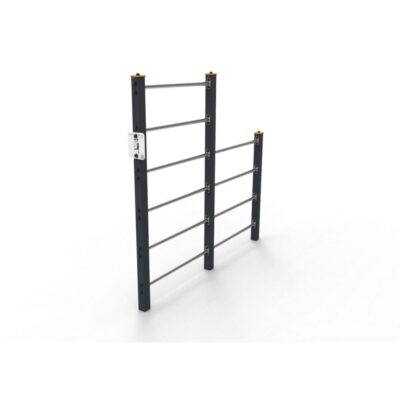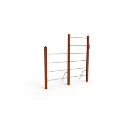 Equipo para fortalecimiento muscular, estructura compuesta por vigas metálicas de 90x90mm color natural y tubos de acero inoxidable 304.