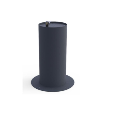 Fuente Citadina, estructura formada por chapa de 4mm y tubo de acero al carbono ø273x4mm, decapado. Tratamiento primario con zinc C5 y acabado lacado en gris forja RAL 600 azul