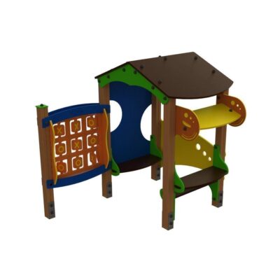– 1 panel lúdico juego Tres en Raya compuesto por 9 piezas cuadradas rotativas (X&O) y paneles decorativos en HDPE.