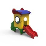 – 1 panel lúdico juego Tres en Raya compuesto por 9 piezas cuadradas rotativas (X&O) y paneles decorativos en HDPE.