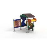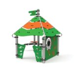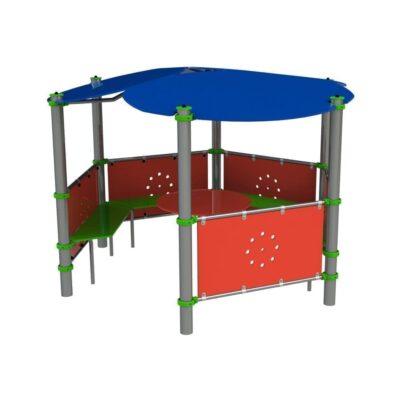 – Techo, bancos a lo largo de los lados de la casa y mesa de tubo de acero inoxidable y paneles de HDPE.