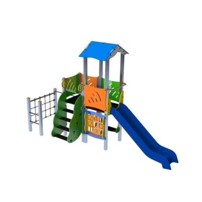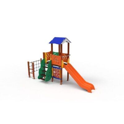 – 1 Tobogán (HIC 1,30m) en HDPE rotomoldeado y con panel de protección en HDPE;