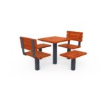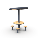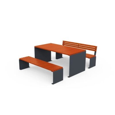 Estructura en chapa de acero carbono decapado, con tratamiento primario a base de zinc C5 y acabado lacado a RAL gris forja 600 deep blue, a una temperatura de 230°C.