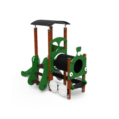 – 1 Tobogán de acero Inox (HIC – 1m) con superficie deslizante de acero inox con paneles laterales de protección y decorativos en HDPE .