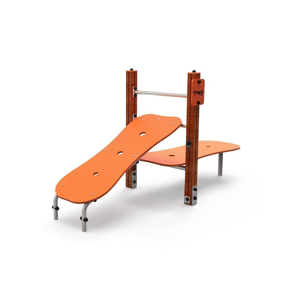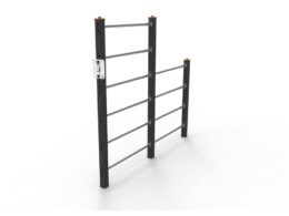 Descripción: Equipamiento compuesto por 2 postes galvanizados em metal de 90x90mm y tubos de Ø40mm en acero Inox 304 y plataformas en HDPE. Paneles informativos en HPL con impresión en vinilo transparente.