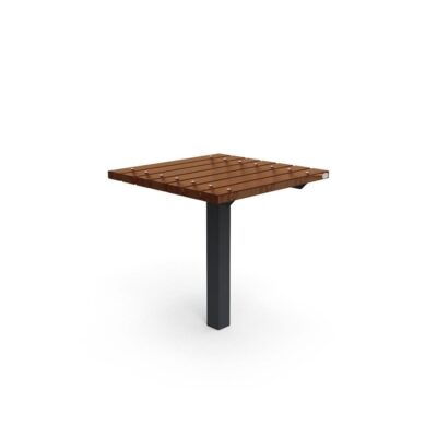 Mesa constituida por 10 listones de madera tropical de 90x35mm color cerezo, tratados y barnizados.